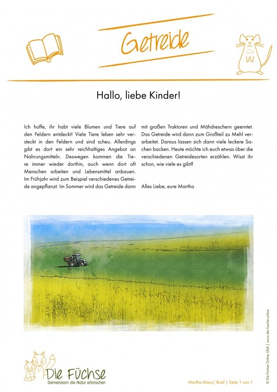 Abenteuer-Modul mit Martha Maus zum Thema "Lebensraum Feld" und "Getreide".